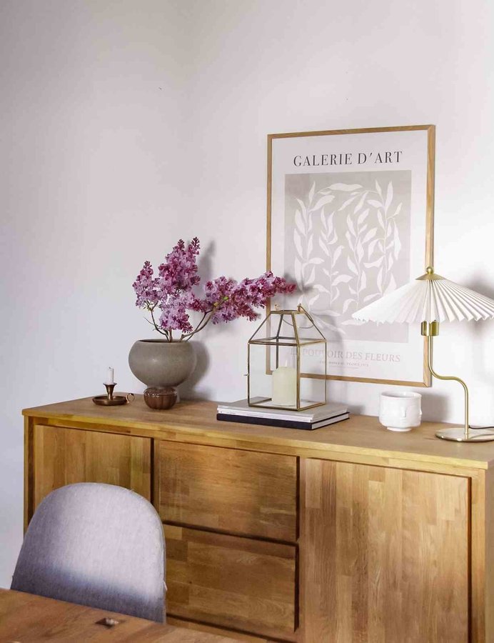 Sideboard, laterne, Bild, Poster, Vase, Blümchen, Esszimmer, Lampe, Dekoration, Zuhause, Wohnen, Dekorieren, Kerzenhalter