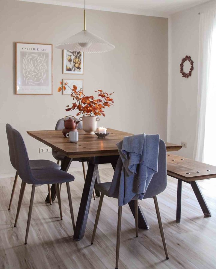 Herbst, Herbstdeko, Esszimmer, DIY, Esstisch, Holz, Holzbank, Stühle, Zweige, Vase, Kerzenlicht