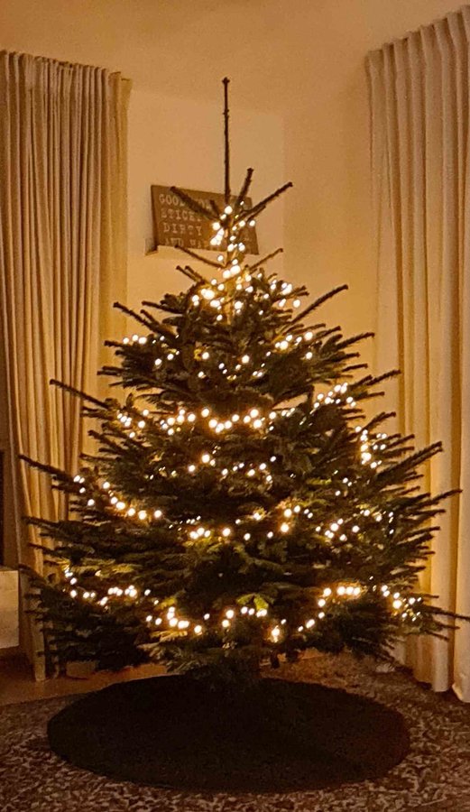 Baum steht, Lichterkette ist drin.
