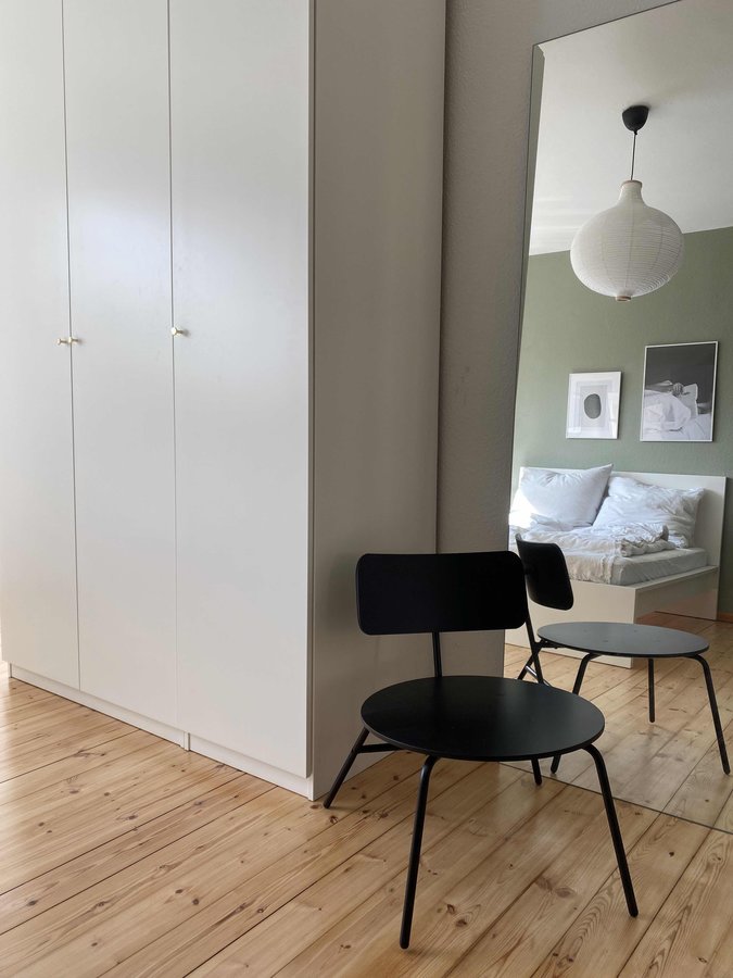 skandinaivisches design, Schlafzimmer, skandinavisch Wohnen, helles schlafzimmer, Minimalistisch, Minimalismus, Schlafen, Schlicht, Grün, Grünes Schlafzimmer