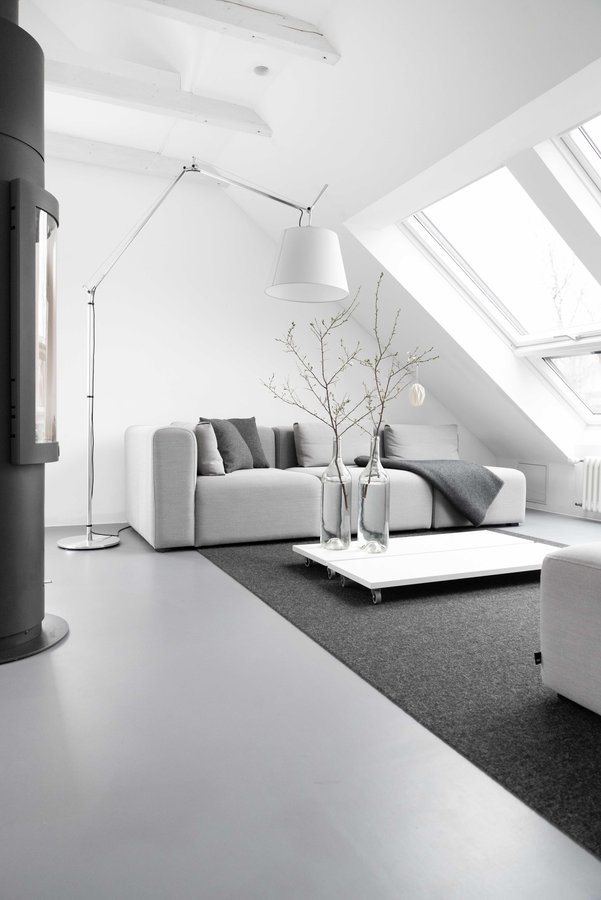 Wohnzimmer, Dachgeschoss, Frühlingsdeko, Osterdeko, Artemide, Tolomeo, Hay, Sofa, Kamin
