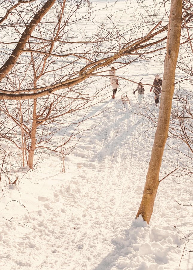 Schnee, Schlitten, Winter, Wintersonne, Familie