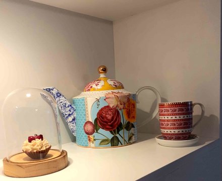 Ich habe die Wandkonsole neu mit meinem Lieblingsgeschirr dekoriert. Ich sammle schon lange und kunterbunt muss es sein!!