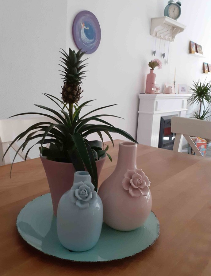 Eigentlich sollten einzelne Blüten in die Vasen, aber dann hat die Miniananas mich im Laden so angelächelt... da musste sie einfach mit! 🍍