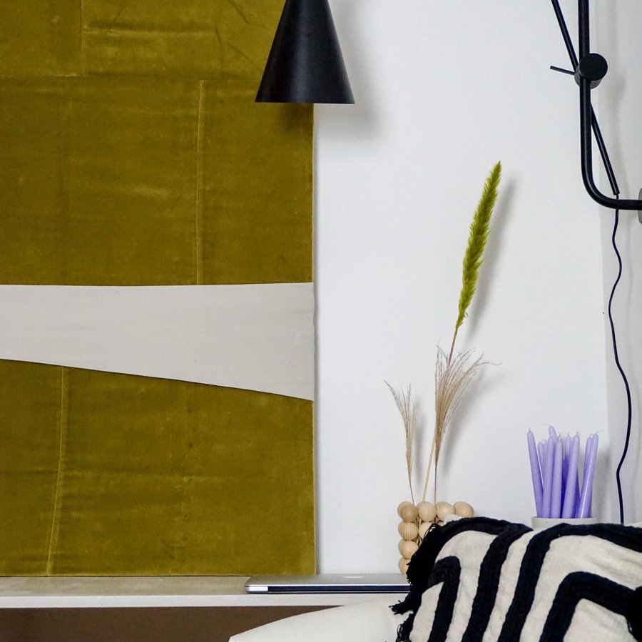 Der Spätsommer steht vor der Tür und es wird Abends gemütlicher! Die letzten sonnigen Tage werden noch einmal so richtig genossen . Gesellige Abende draußen genießen und so viele warme Sonnenstrahlen wie möglich tanken. Perfekt dazu wird die Farbe in der Wohnung in warme, freundliche Nuancen gewechselt! Lieblingsfarbe hier ist ein sattes olivgrün mit goldstich! Direkt wurde ich aus Stoffresten passend zu den Couchkissen eine neue Wandbekleidung gebastelt….um ein einheitliches Bild zu schaffen.