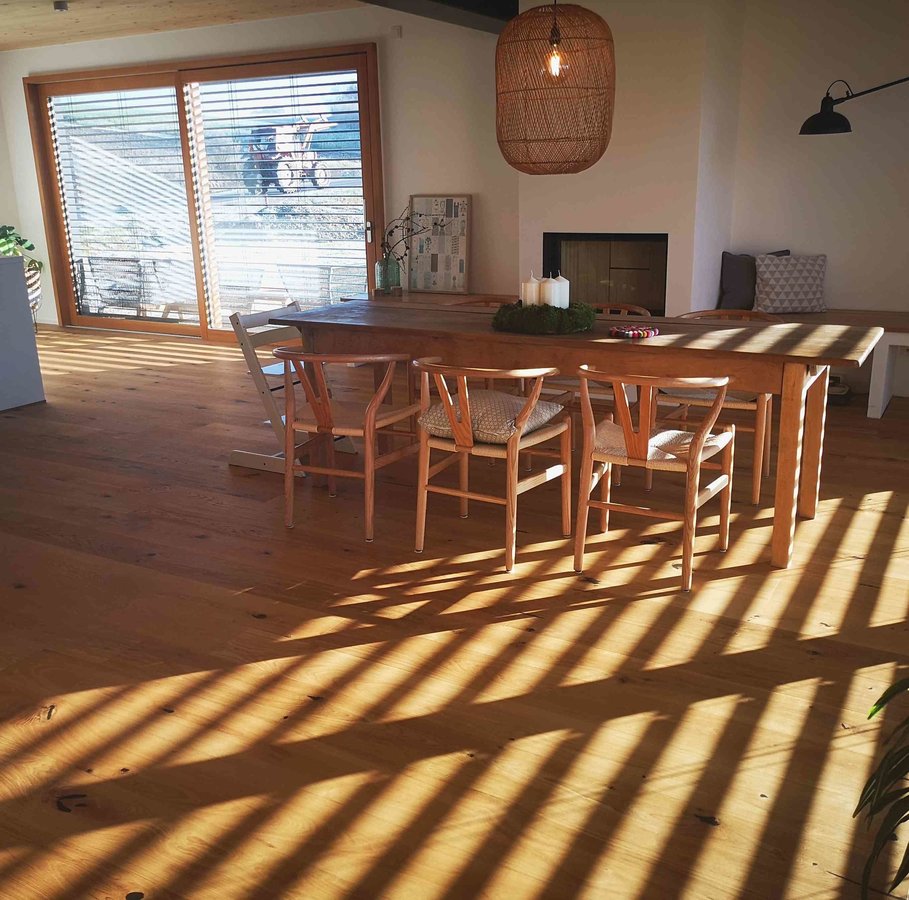 Esszimmer, Esstisch, Wishbonechair, Dekoidee