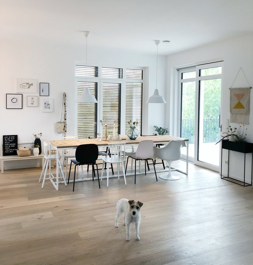 White Living, dog, Esstisch, Holztisch, Eichendielen
