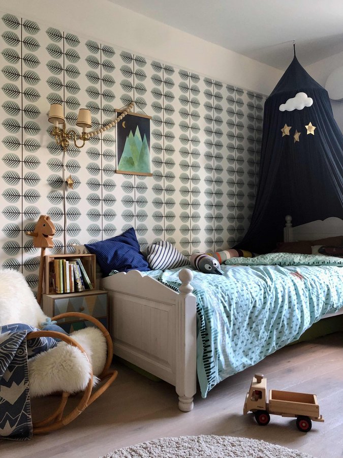 Kinderzimmer, Blau, Mustertapete, Vintage, Boras, Lieblingsblick, FotoFrage
