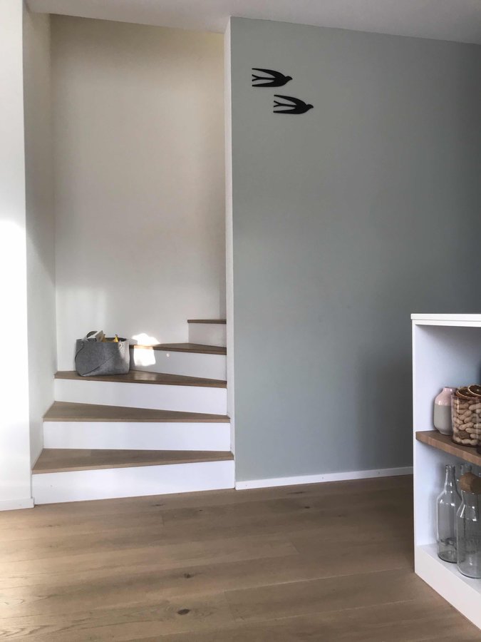 salbei grün, Wandfarbe, Eichenparkett, Treppe, Schwalben, Bloomingville, Farrow and Ball