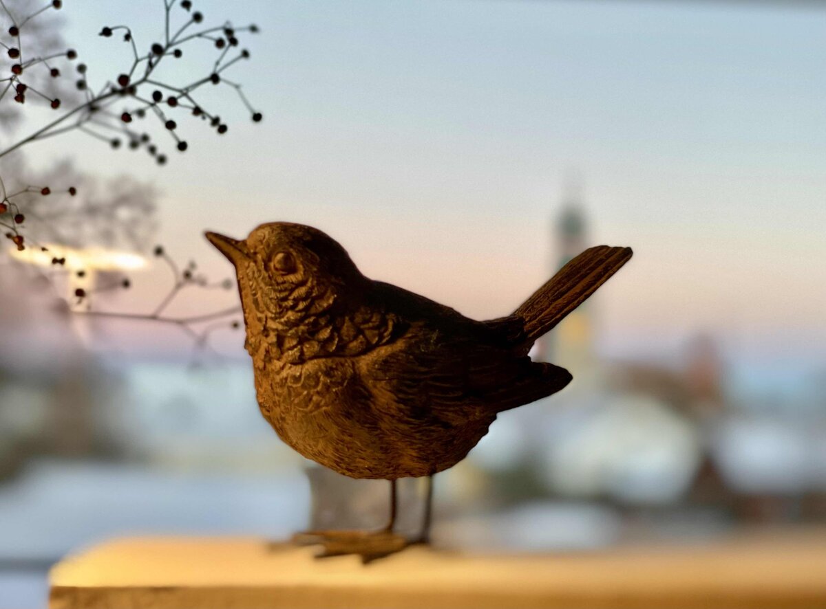 Winterabend, Januar, Wohnzimmerfenster, Pipmatz, Vogel