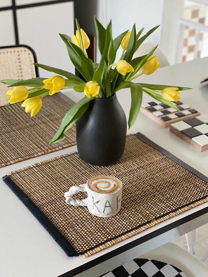 Tulpen, Blumen, DIY Tasse, Kaffeepause, Kaffee, Frühlingsdeko, Dekoidee, Schachbrettmuster