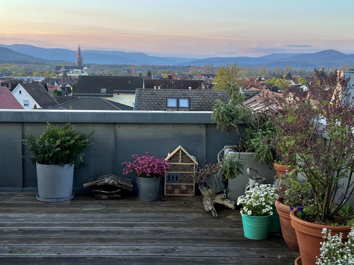 Dachterrasse, Pflanzen, Blumentopf, Ausblick