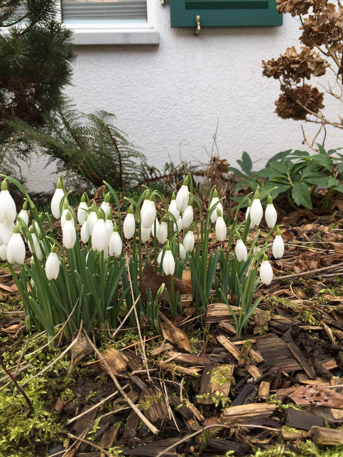 Vorgarten, Küchenfenster, Blümchen, Hortensie, Farn, Tanne