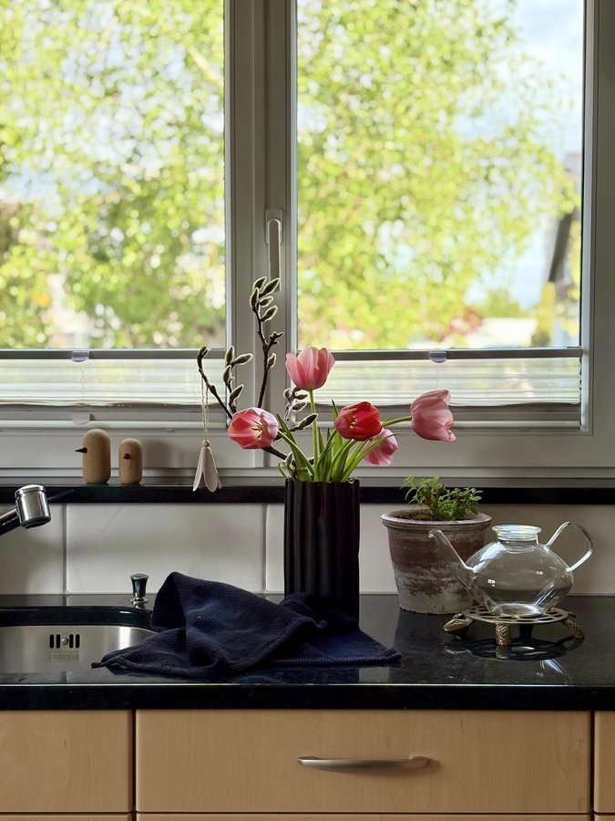 Küche, Tulpen, Teekanne, Vintage, Verveine, Vase, DIY, Blüte, Upcycling, Vogel, Herbi