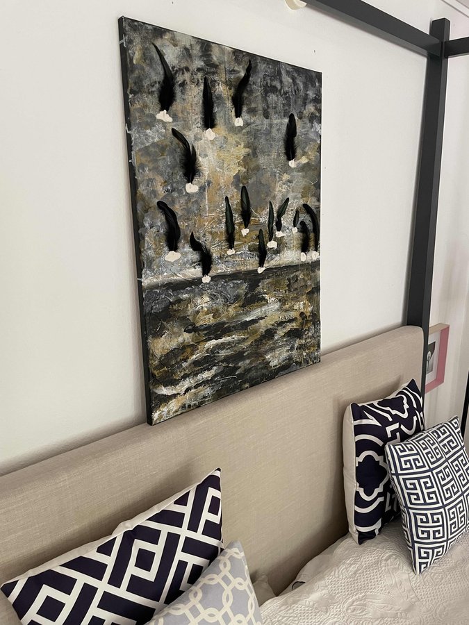 Kunst, Acryl, DIY, Bett, Himmelbett, Kissen, Neptune