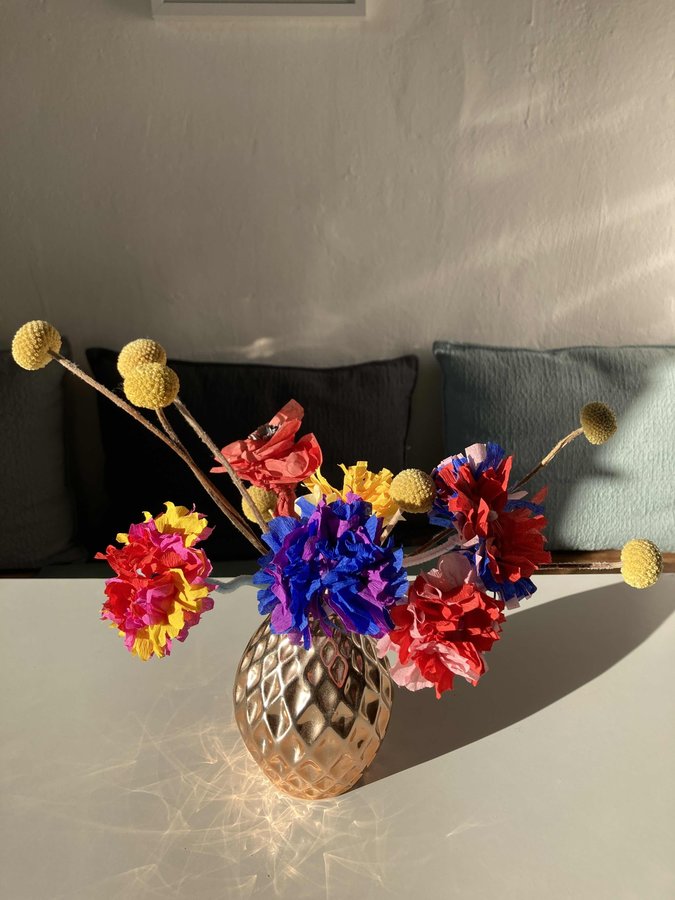 „Mama, ich möchte etwas basteln“, sagte meine Tochter gestern Abend, kurz vor dem Schlafen gehen, zu mir. Und entstanden sind diese wunderschönen Krepppapier Blumen.