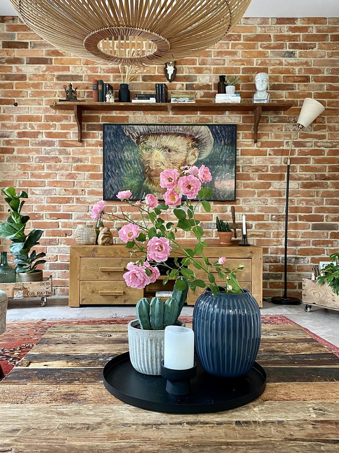 Wohnzimmer, Couchtisch, Steinwand, Kunst