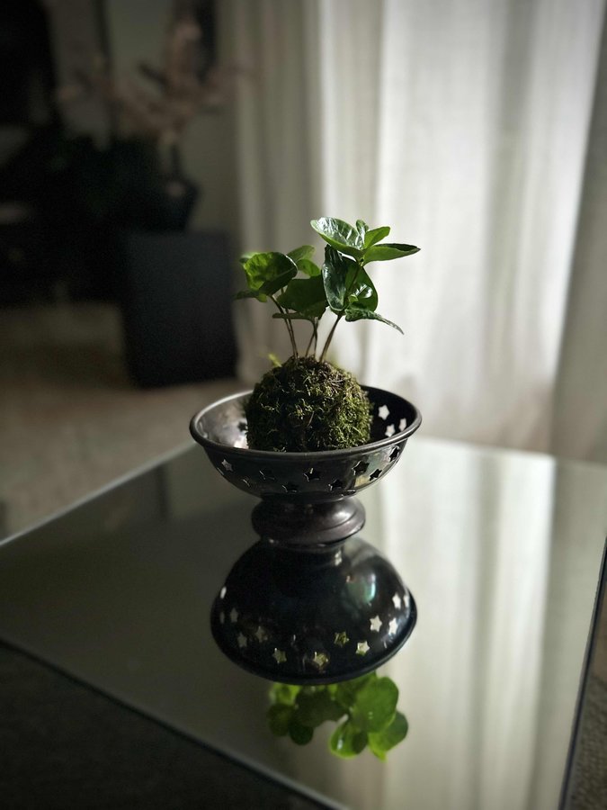 Kokedama, DIY Mooskugel, Silberschälchen, Spiegeltisch, minipflanze
