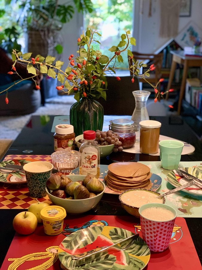 … mit frischem Obst und „Blumen“ aus dem Garten