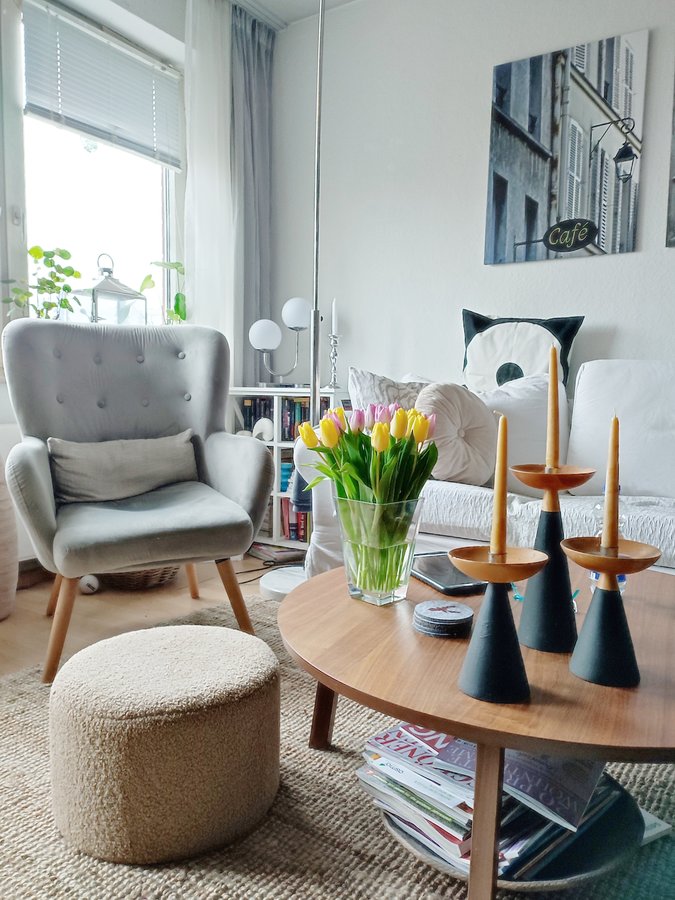 Tulpen habe ich mir heute auch gegönnt. Das sieht gleich ein bisschen nach Frühling aus.