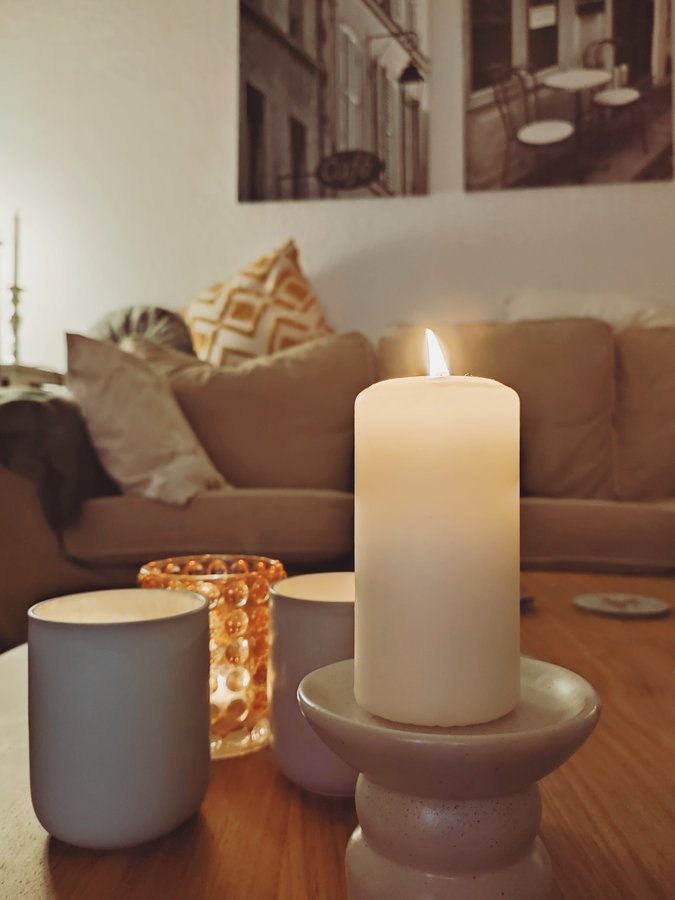 Winterabend, Februar 2022, Wohnzimmer, Kerzenlicht, Gemütlich gemacht, Feierabendmood