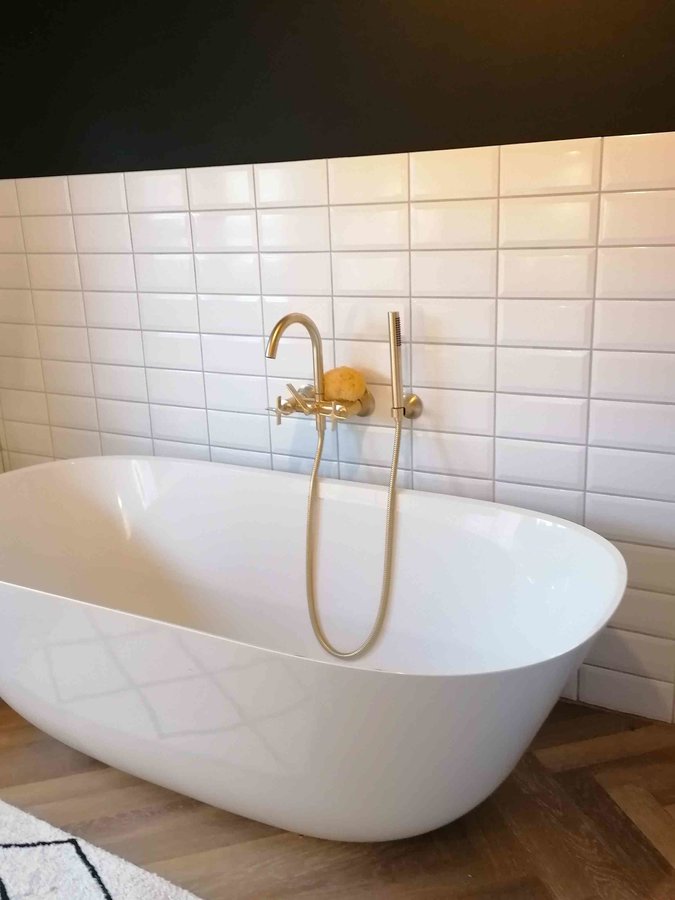 schwarze Wand, Venyl Boden, metrofliesen, Altes Haus