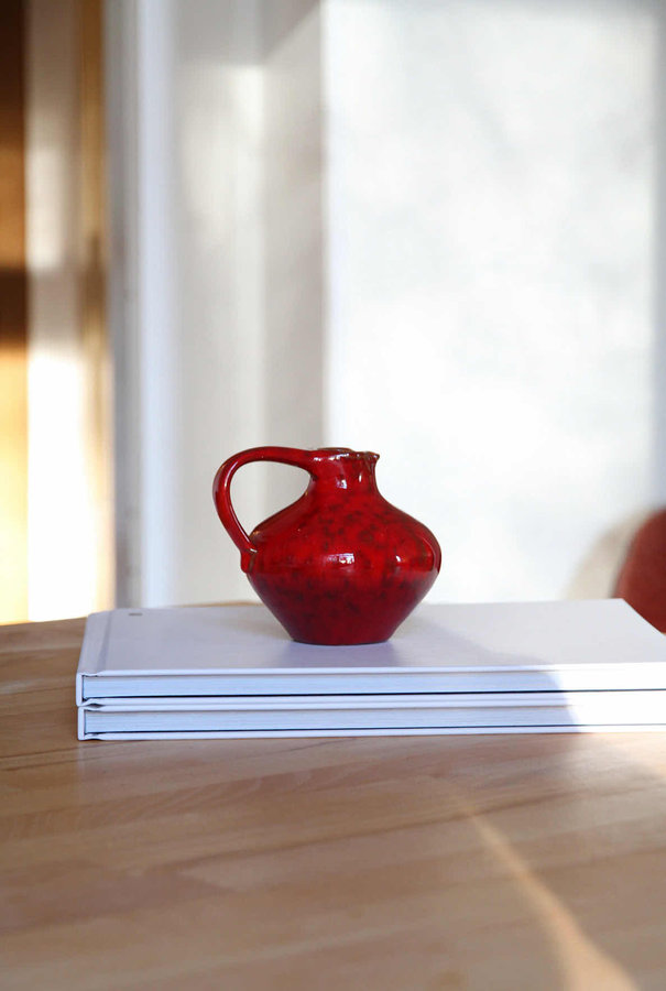 Vase, Ess und Wohnbereich, Esszimmer, Sonnenschein, Altbauliebe, Holztisch, Rot, Frühling, 2021, Keramik, Midcentury