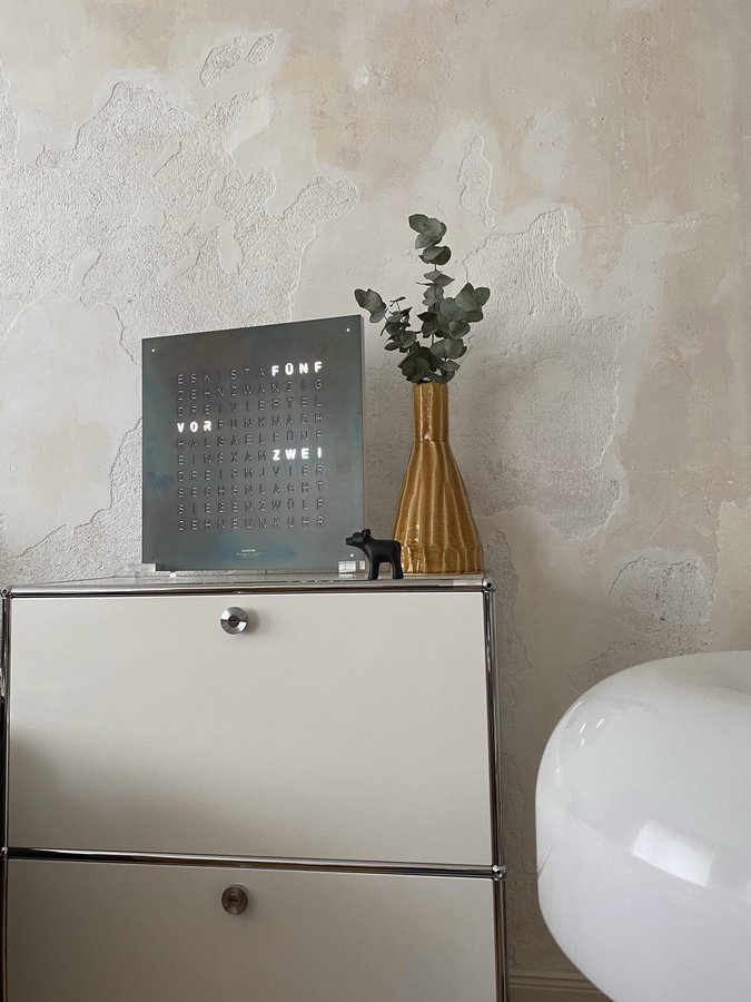 Sicher ist es nicht die schönste Wandgestaltung, aber diese Wand im Wohnzimmer erinnert mich immer an die vielen Renovierungsarbeiten im alten Haus: überall, wo wir die Glasfasertapeten entfernt haben, kam auch gleich immer ein Stück Wand mit und es rieselte der Sand. Das hieß immer viel liebevolle Spachtelarbeit für meinen Lieben. Da wir nach der Wohnzimmerrenovierung noch nicht wussten, wie wir diese Stirnwand gestalten wollen, habe ich kurzerhand den Sand abgefegt und die bröseligen Stellen mit weißer Farbe überstrichen. Zum Entsetzen des Lieben ist es so geblieben und hat sich für uns nach zwei Jahren weggeguckt 😂