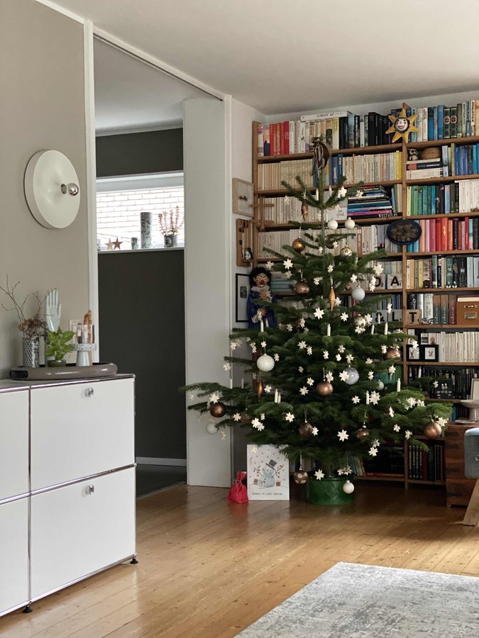 Das Licht geht immer erst am 24. an. Aber den Baum schmücken wir, wenn wir Zeit haben. Es gibt nichts, was Stress machen soll, nur Freude. Und was nicht fertig ist, ist halt nicht fertig 🤷♀️☺️