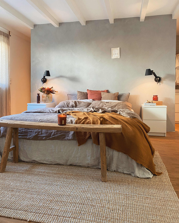 Gemütlichkeit, Schlafzimmer, Cozy, Deko, Dekoideen, Leinenbettwäsche, Herbstdeko, Herbstfarben