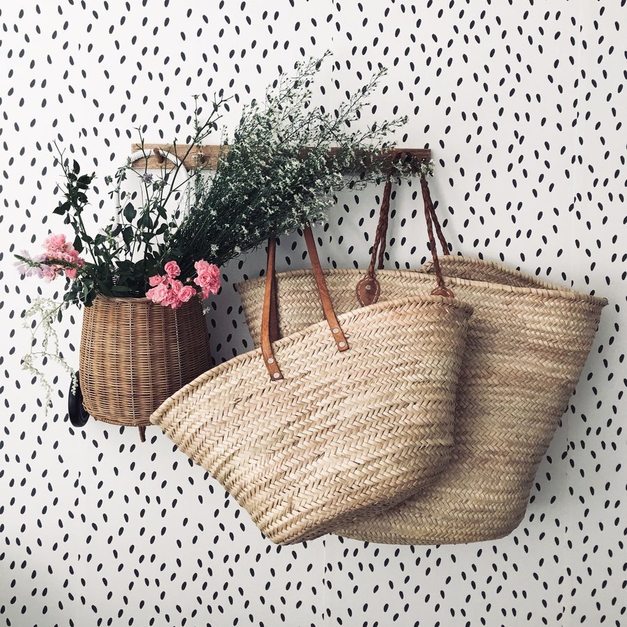 Nachhaltigkeit, Korbtaschen, Punktetapete