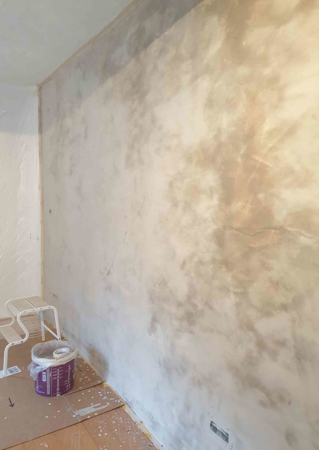 Heute wird die Schlafzimmerwand gestrichen. Mit Kalkfarbe. Es bleibt spannend, wie es am Ende aussieht. V.a. weil ich auf gut Glück verschiedene Farbtöne gemixt habe.