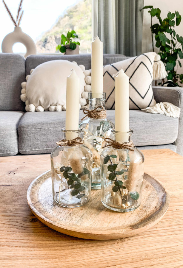 Frühlingsdeko, Sommerdeko, Trockenblumen, Kerzen, Tischdeko, DIY, Dekoidee