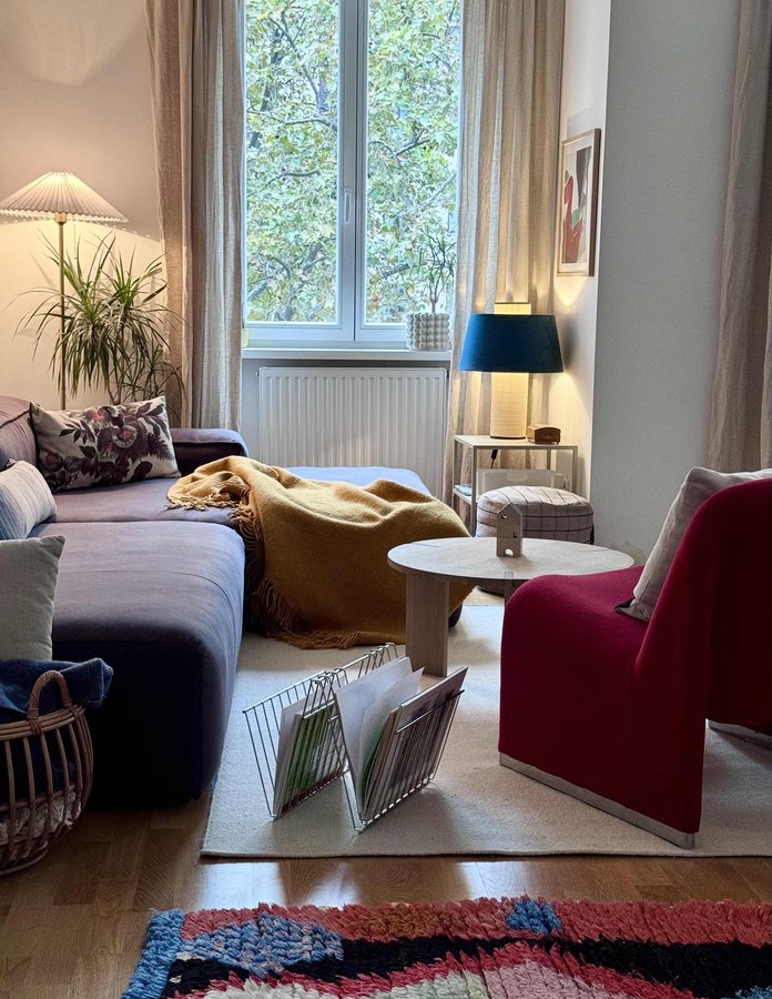 Wohnzimer, Oyoy, Hk living, Kelim Teppich, Leinen, Alky, postmodern, Wolle, Berber Teppich, Vintage, Sessel, Lounge, Rolf Benz, Freistil, Holz, Rattan, Rot