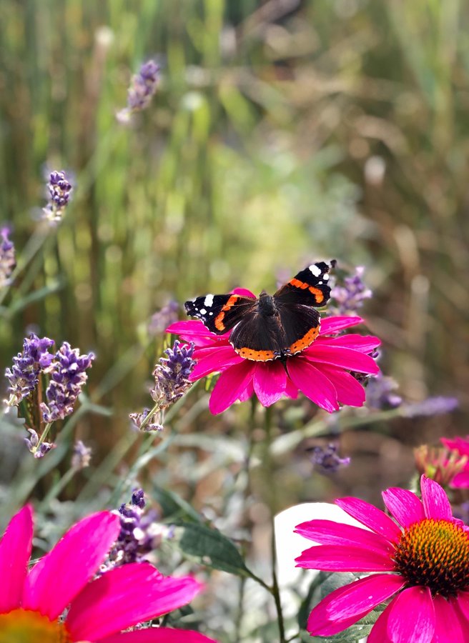 Natur, Garten, Schmetterling, Lavendel, Admiral, Sonnenhüte