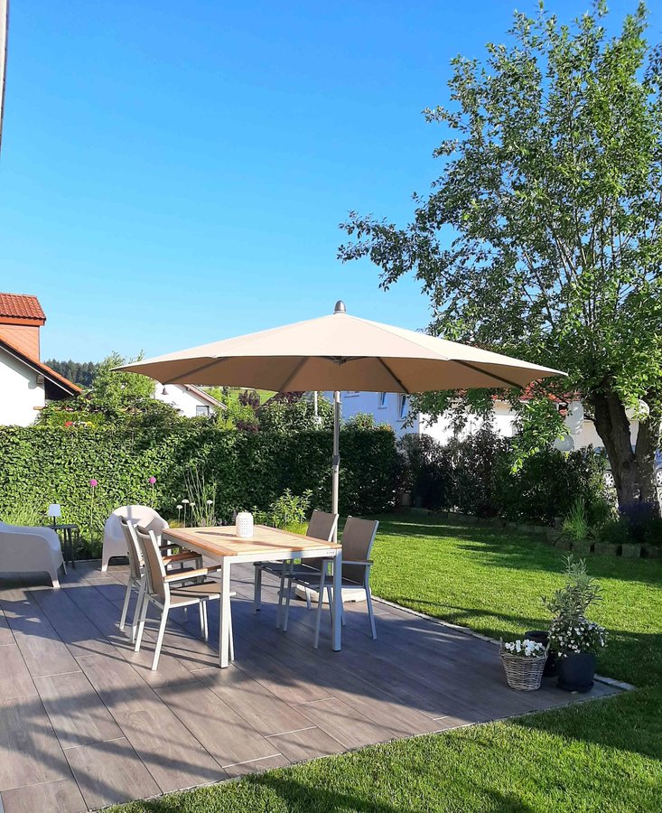Garten, Gartenglück, Gartenliebe, Sonnenschirm, Sichtschutz, Sommer, Gartendeko, Terrassendeko