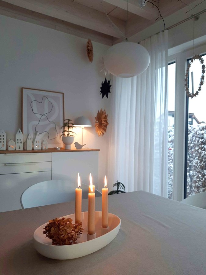 Kerzenhalter, Gemütlichkeit, skandinaivisches design, Ikea Hack, Storefactory, Blumendeko, Hortensien, Essbereich, Esszimmer, Winterdeko