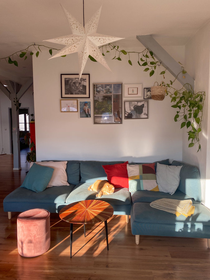 Wohnzimer, Sofa, Sofaecke, Farbenfroh, licht, Bilderwand