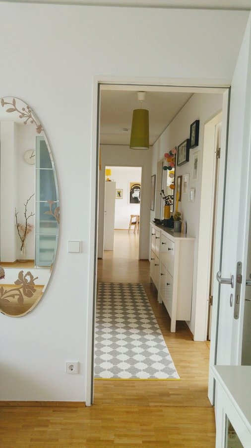 Flur, Spiegel, Teppich, Gelb