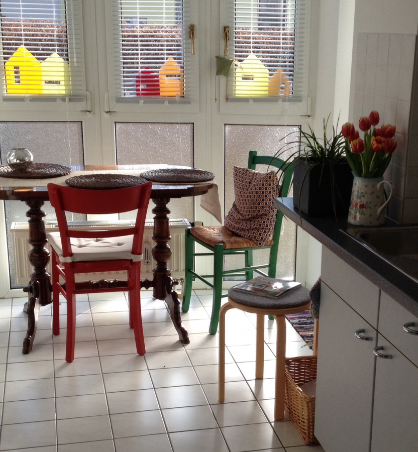 Sonne, Tulpen, Haus, Häuschen, Fenster, Fensterbild