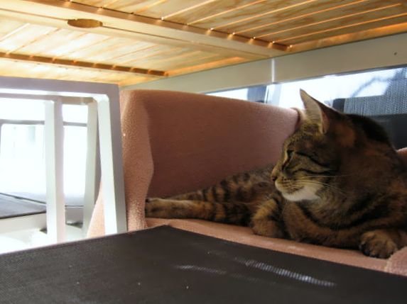 ...und das ist Chiccas` Lieblingsplatz - eine luftige Kuschelhöle auf dem Stuhl unter dem Tisch...