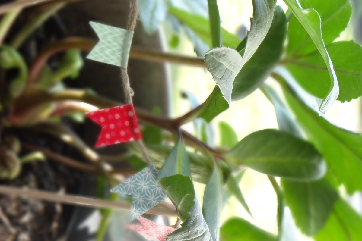 Die Wimpelkette besteht aus masking tape, Paketschnur und Schaschlikspiessen...