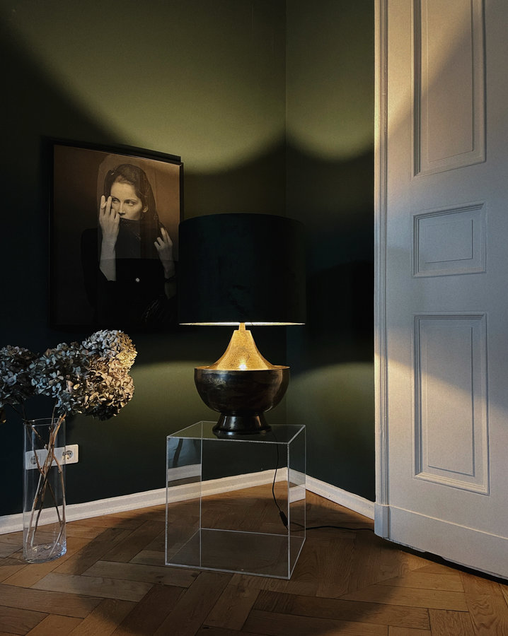 Cozy, Dunkelgrün, Samt, Metal, Hortensien, Lampen, Lampenschirm, Parkett, Altbauliebe