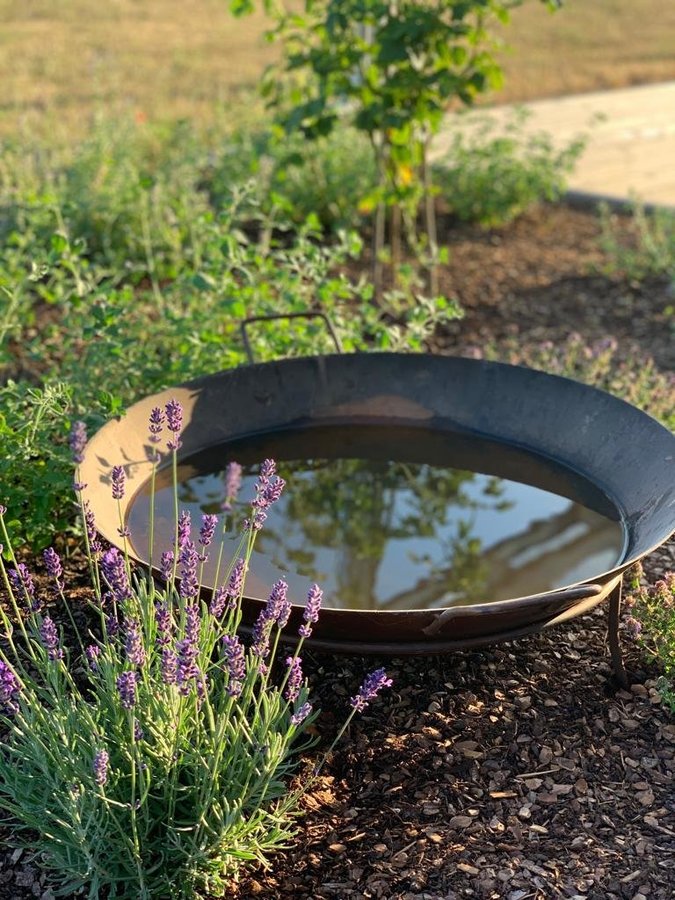 Da es bei uns seit einigen Wochen kaum geregnet hat, haben wir heute unsere Feuerschale zur Vogel- bzw. Igeltränke umfunktioniert - Tierchen können jetzt kommen 🦔