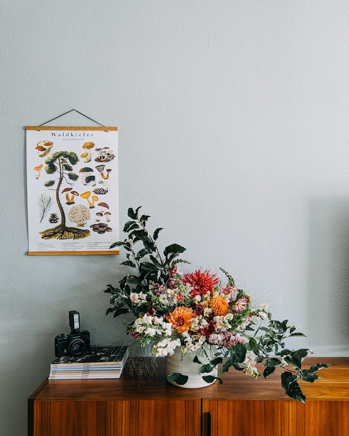 Vintage Sideboard, Blumendeko, Blumenstrauß, Slowflowers, Schnittblumengarten
