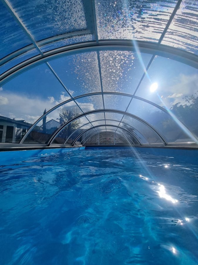 Dank der Wärmepumpe und dem Dach können wir den Pool auch bei nicht so gutem Wetter nutzen.