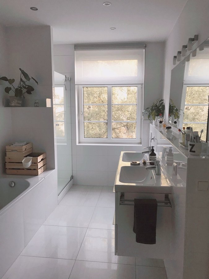 Das Badezimmer. Vorm Einzug von Grund auf renoviert. Wie so oft im Altbau, haben wir leider nur ein Bad. Wir planen eine Gäste WC. Kommt in 2019... immer ein Projekt im Kopf ;-)