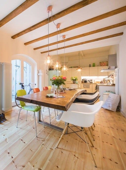 Unsere lange Tafel aus Eichenholz, das Herzstück unseres Ess- und Wohnbereichs. Ich habe den Tisch gebraucht gekauft und freue mich jeden Tag über dieses imposante Möbelstück. Die Holztafel lädt zu ausführlichen Essen in großer Runde ein.
