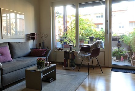 Das ist mein Lieblingsblick! Vom Esstisch aus auf die Leseecke und den Balkon mit dem wechselnden Licht!