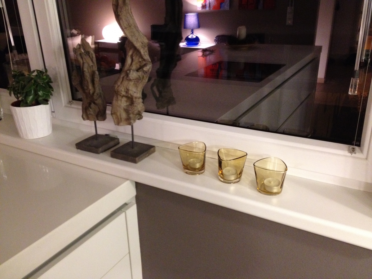 Deko, Bunte Kerzen, Graue Wandfarbe